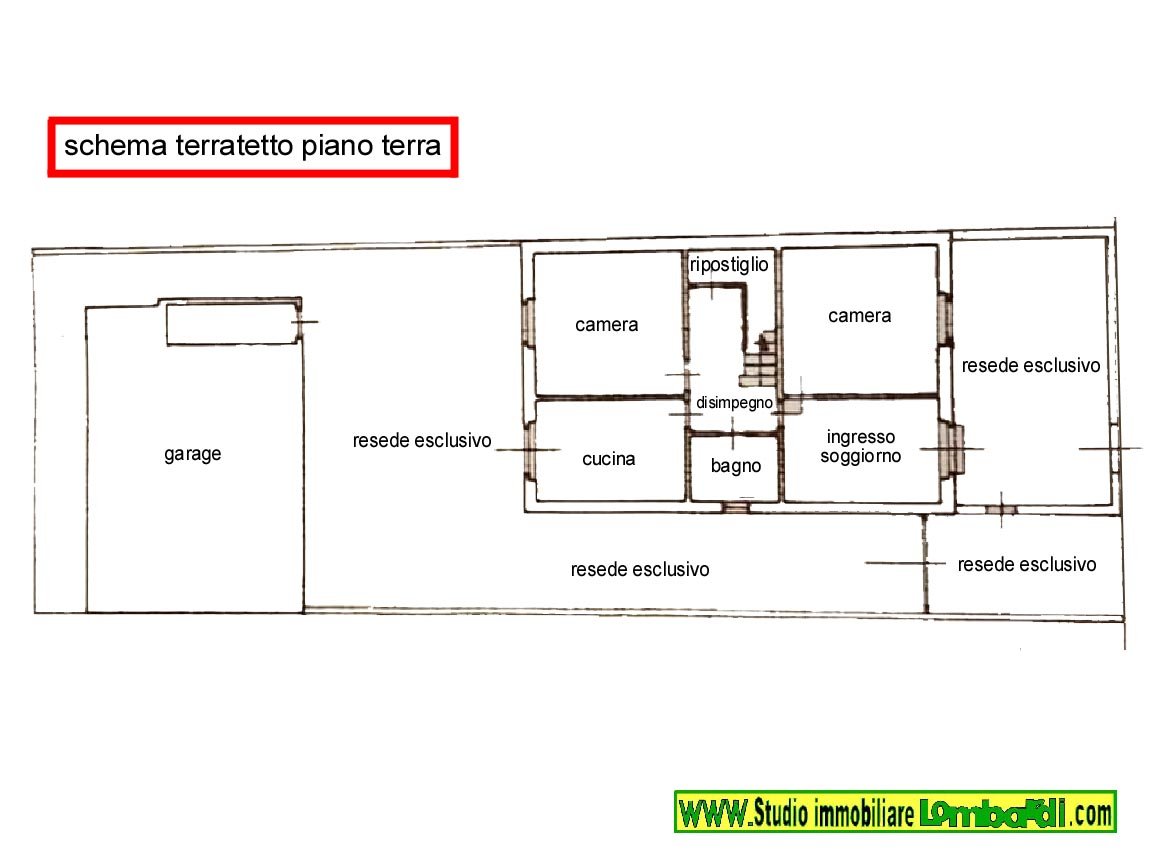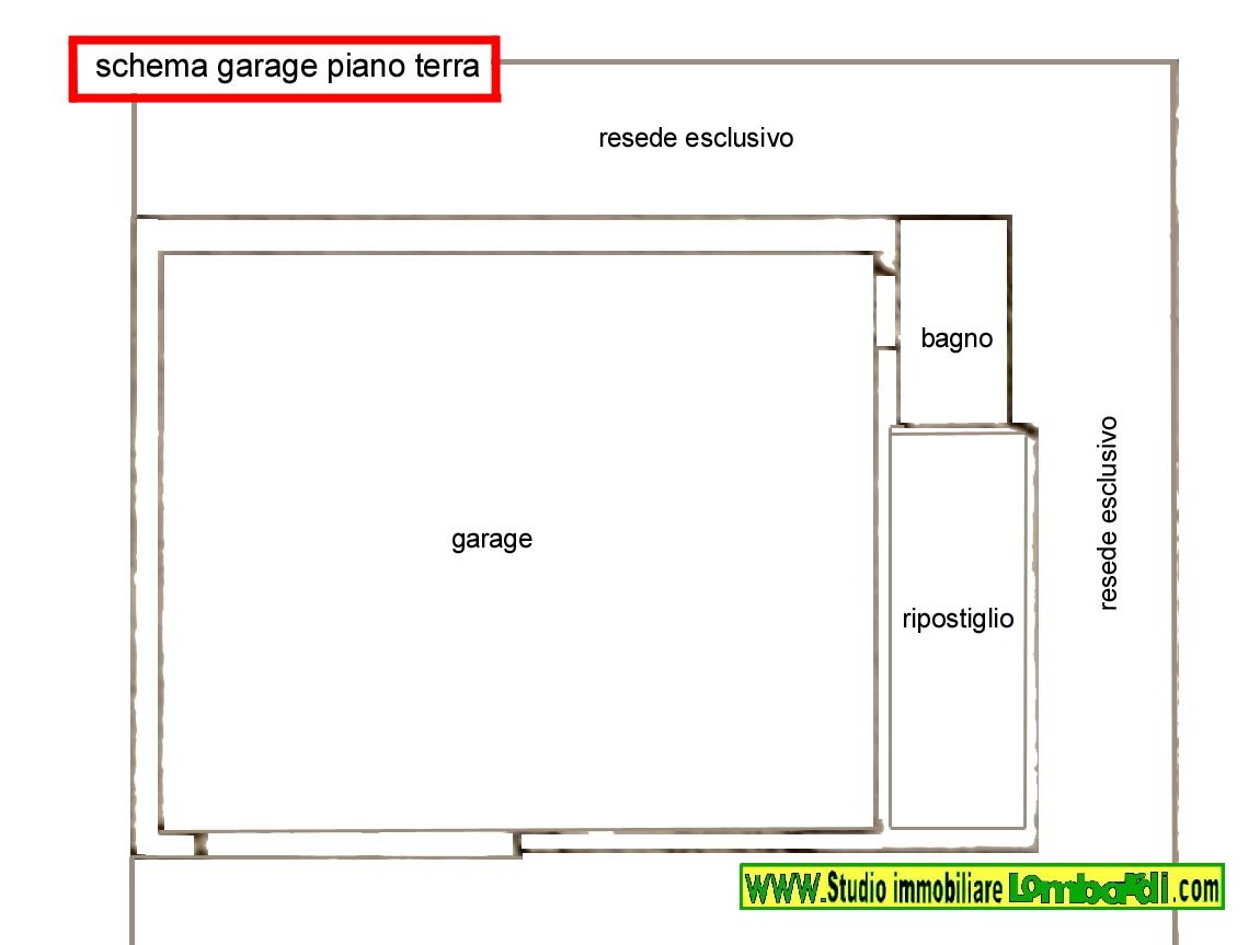 Gli immobili sopra descritti, sono corredati da un'ottimo garage, posto sul retro della costruzione e misurante circa 45 mq, nel quale insite un ripostiglio ed un bagno. I beni sono circondati da un resede esclusivo sui loro tre lati liberi, misurante circa 175 mq.