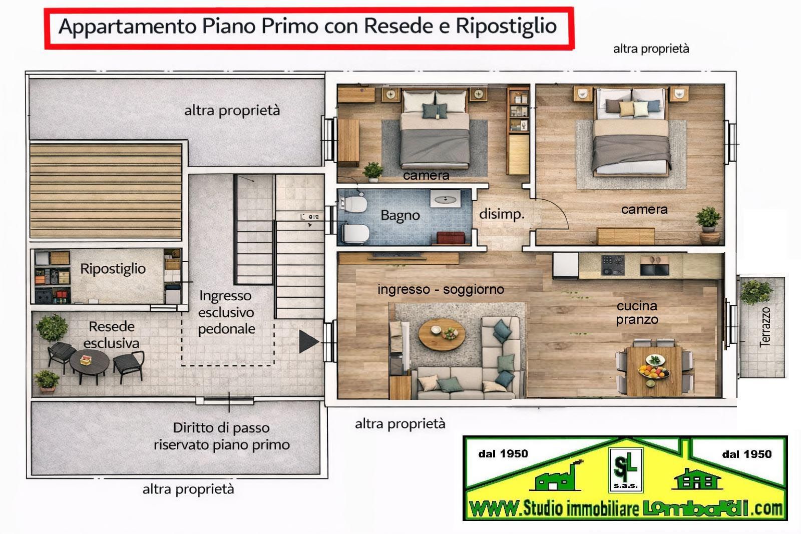 Completa la proprietà un resede esclusivo con lavanderia indipendente di circa 7 mq.